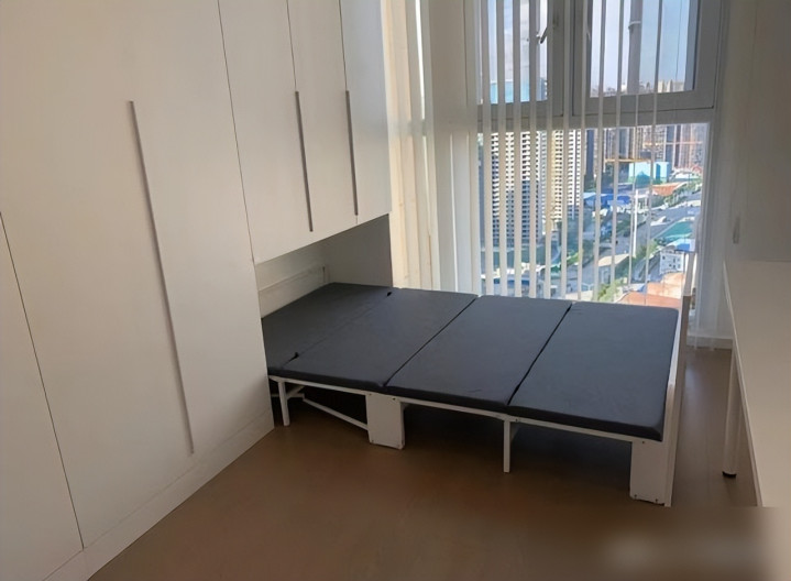 我邻居家是loft,本来想省空间装了个衣柜折叠床,结果用了一个月就放弃了——每天睡觉要把衣柜里的衣服全挪出来,铺被子;睡醒了又得把被子叠得跟豆腐块似的塞回去,再推上床板,早上赶上班的时候哪有这功夫?