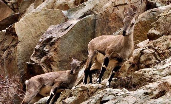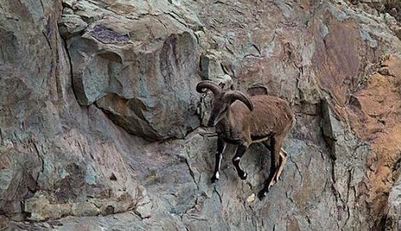 岩羊的蹄子是它们爬崖的“神器”。蹄子又小又灵活,能轻松插进岩缝里,蹄底还有一块软软的肉垫,抓地力强得像吸盘,刹车稳得一批。别说垂直的崖壁,哪怕只有一个小小的立足点,岩羊都能站得稳稳当当。它们的膝盖也厉害,韧带厚实,弹跳力惊人,一跳三米跟玩似的。即便从十米高摔下来,岩羊也能四脚着地,毫发无损。
